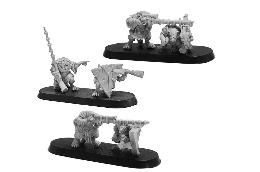 Contient des dizaines d’éléments permettant d’assembler 3 équipes d’hommes-rats utilisant des jezzails.