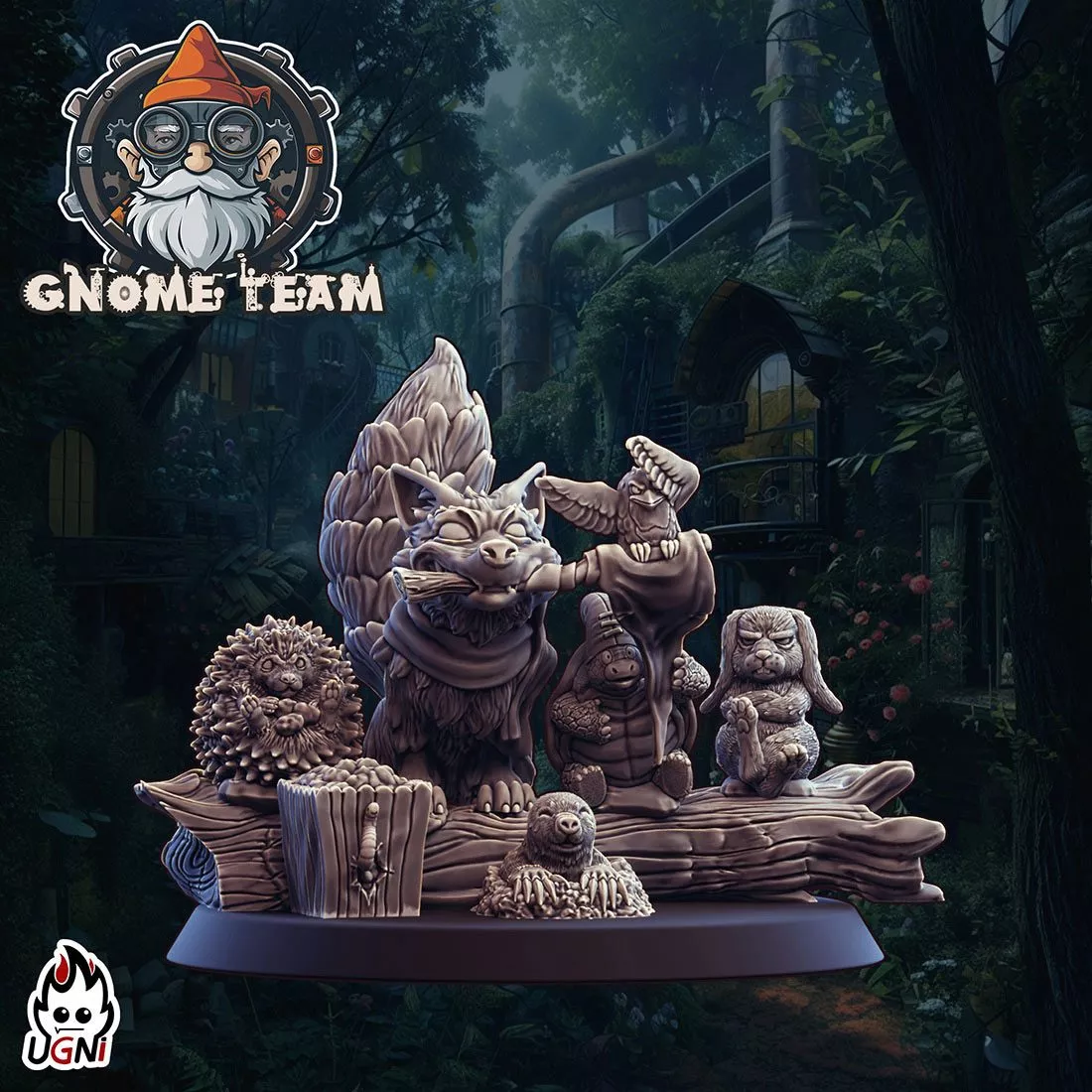 Figurines conçues par la marque Ugni miniatures et imprimées en 3D. Fournies avec un socle rond de 40mm. Figurines non peintes.