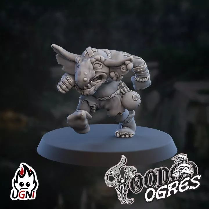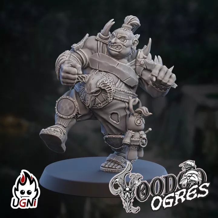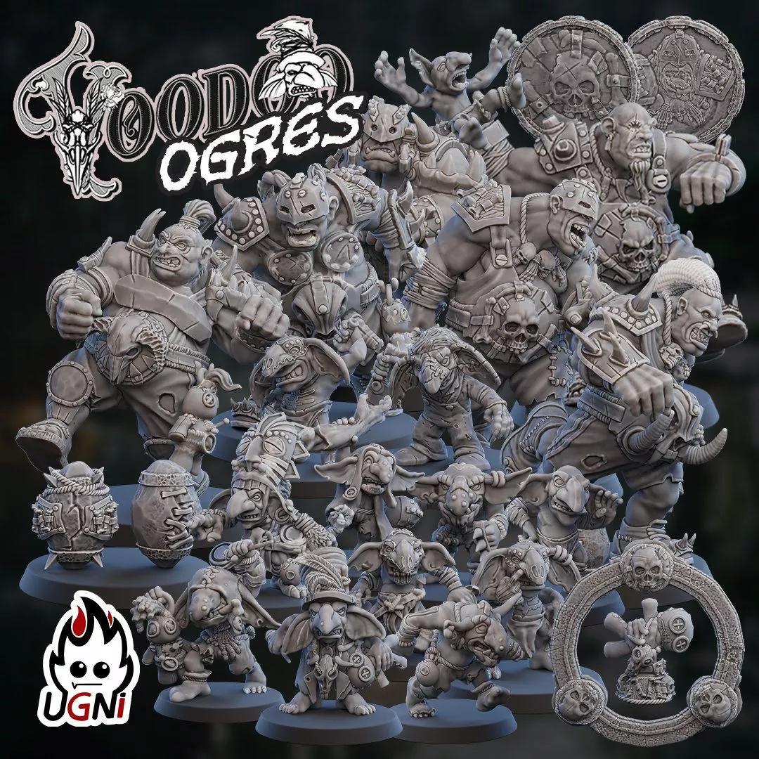 Figurines conçues par la marque Ugni miniatures et imprimées en 3D. Les ogres sont imprimés avec une taille de 6cm. Fournis avec 6 socles ronds de 40mm et 14 socles ronds de 32mm. Figurines non peintes.
