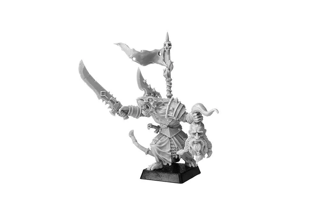 Eléments permettant de monter un seigneur homme-rat armé d’une épée et tenant la tête d’un nain dans sa seconde main.